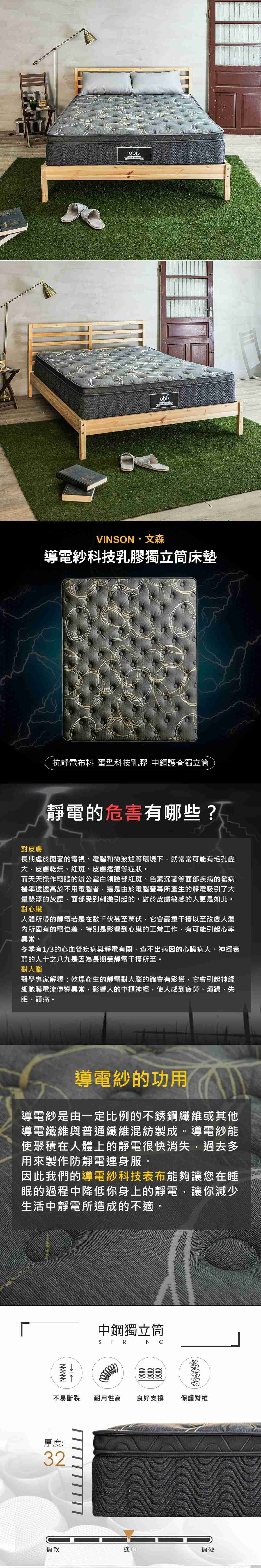 【obis】Vinson-導電紗科技乳膠獨立筒床墊雙人5×6.2尺_活