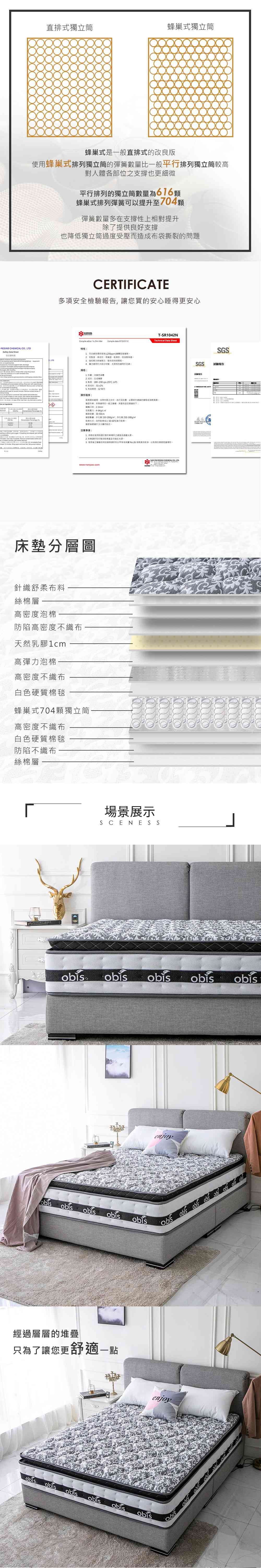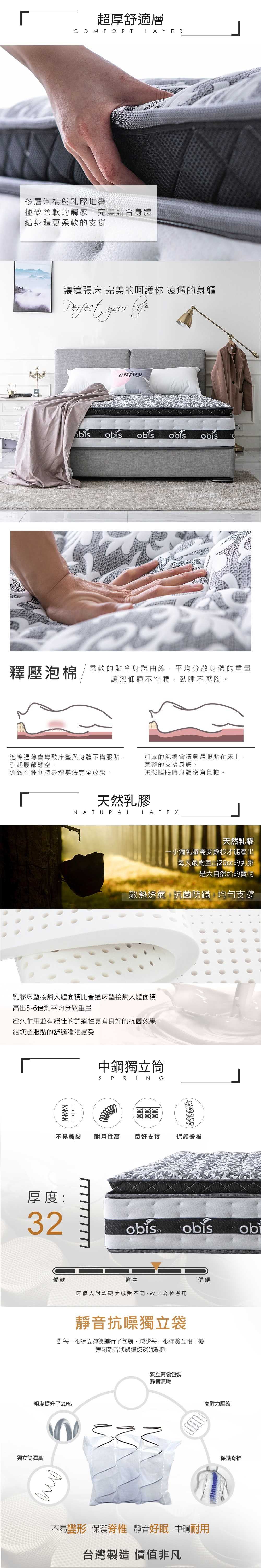 【obis】Marjorie乳膠二線獨立筒床墊雙人加大6×6.2尺