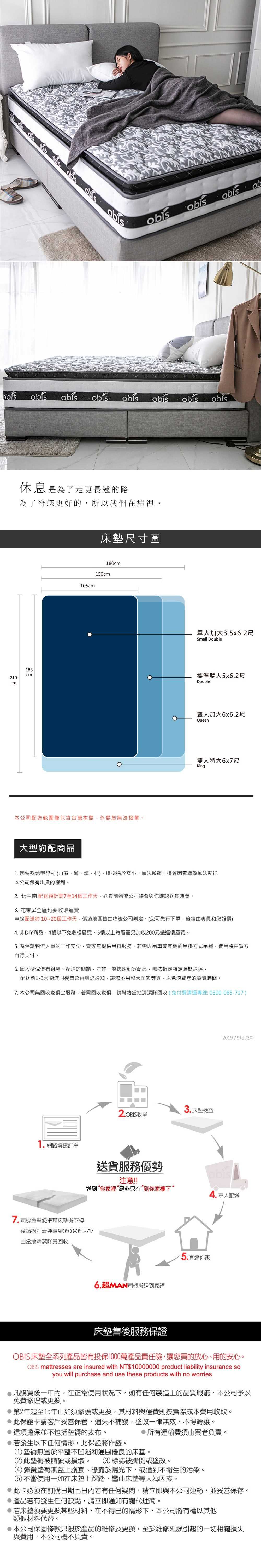 【obis】Marjorie乳膠二線獨立筒床墊雙人加大6×6.2尺