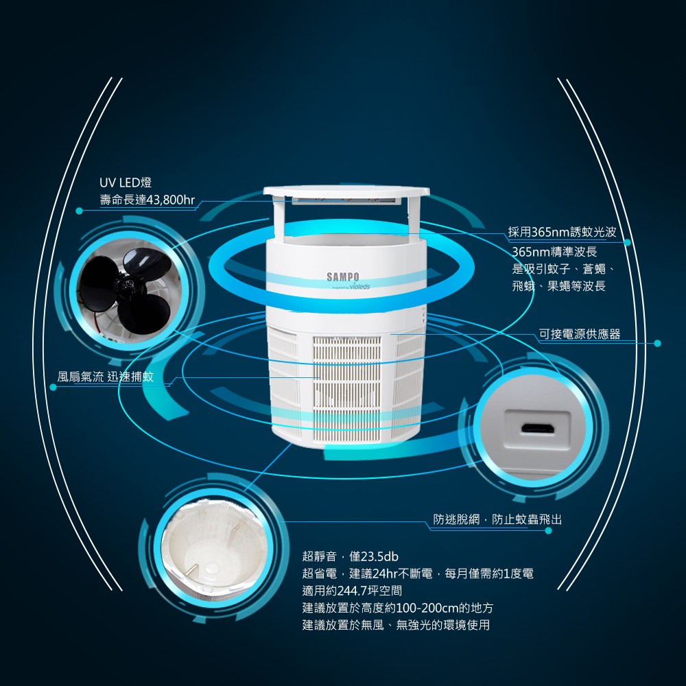 (1) 360度捕蚊無死角