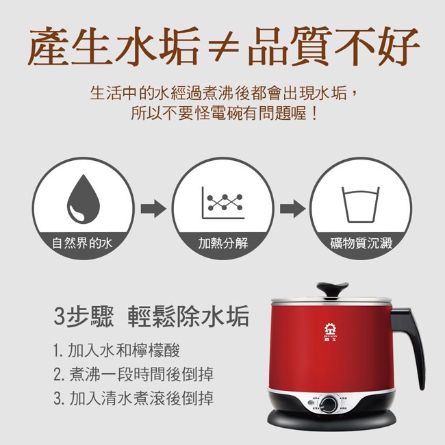 【JINKON 晶工牌】Jinkon晶工 電碗 多功能1.8L JK-105