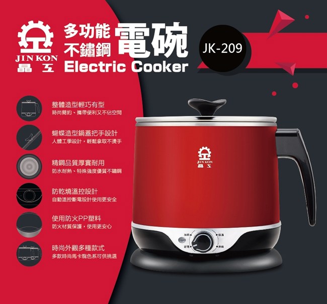 JINKON 晶工 電碗 多功能 2.2L JK-209