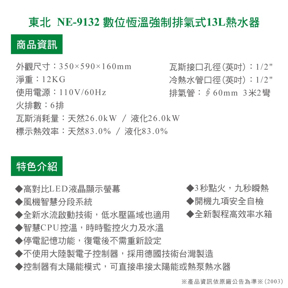 ※產品資訊依原廠公告為準※(2003C)