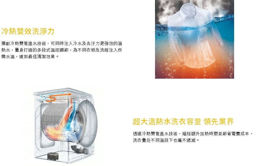 洗衣水溫選擇 4段水溫選擇