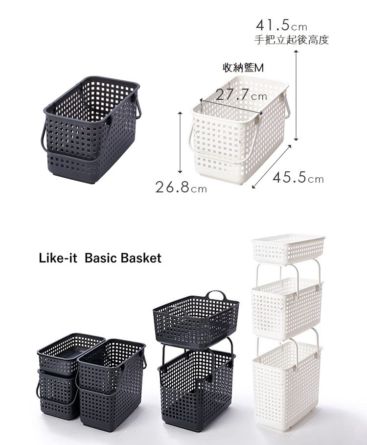 點我下載日本 Like-it [窄款]可堆疊收納籃 洗衣籃 M(單個)-灰色