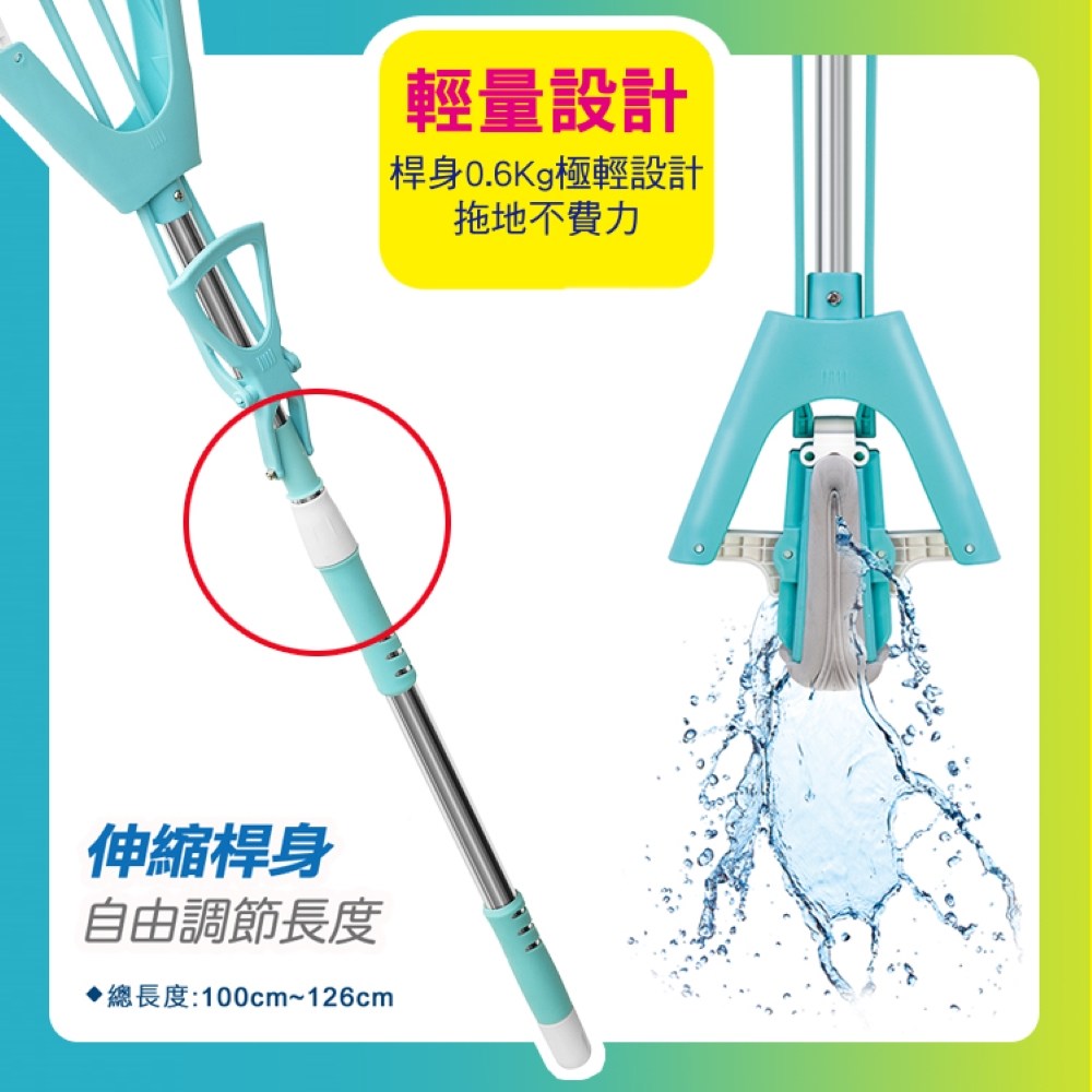 【好神拖】平板拖把輕清拖玩色系列免手洗兩用刮水拖把組(1桶1拖2布)