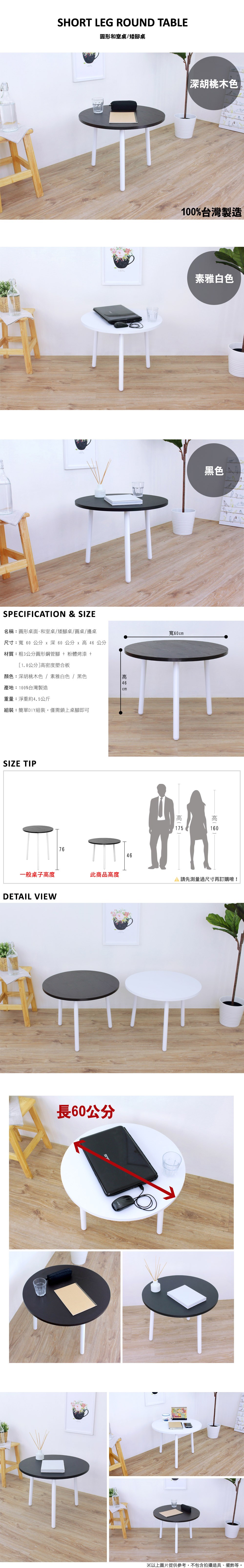 【頂堅】寬60x高46/公分-圓形和室桌/矮腳桌/餐桌/邊桌/沙發前桌(三色可選)