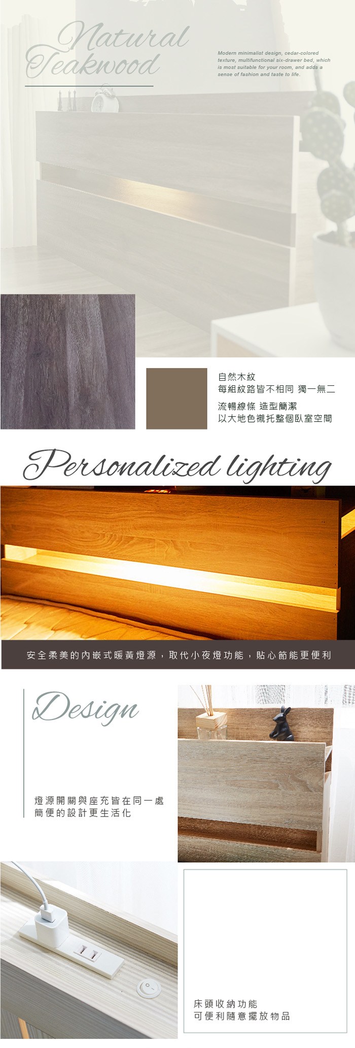 【藤原傢俬】收納床頭附燈(不含床底) 雙人加大梧桐 雙人加大