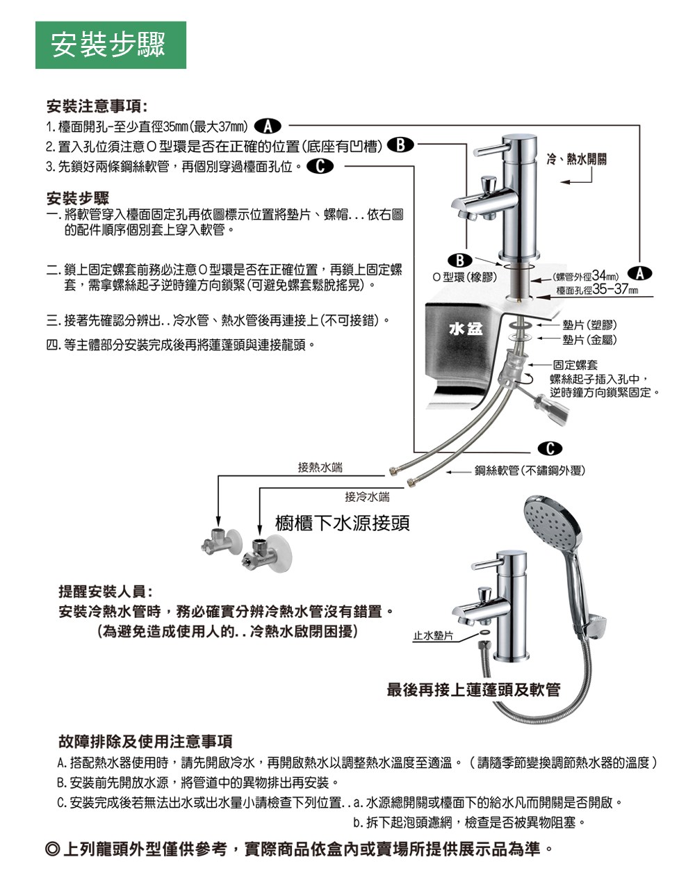 規格:適用單孔面盆安裝(孔徑-3.5cm)