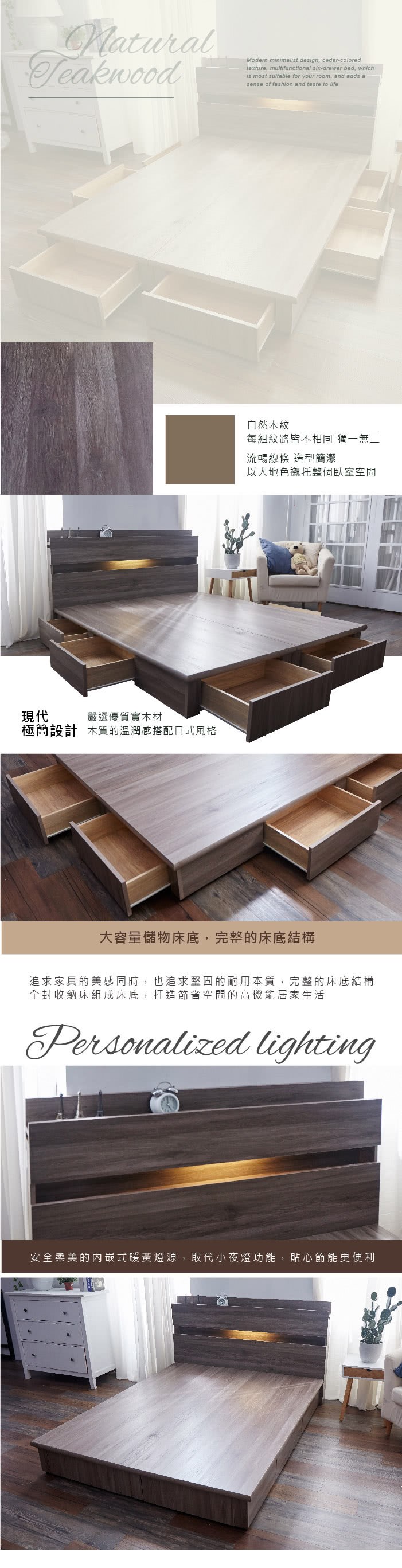 Homelike 喜家居雙人加大6尺六抽屜床組-原木色(2531)