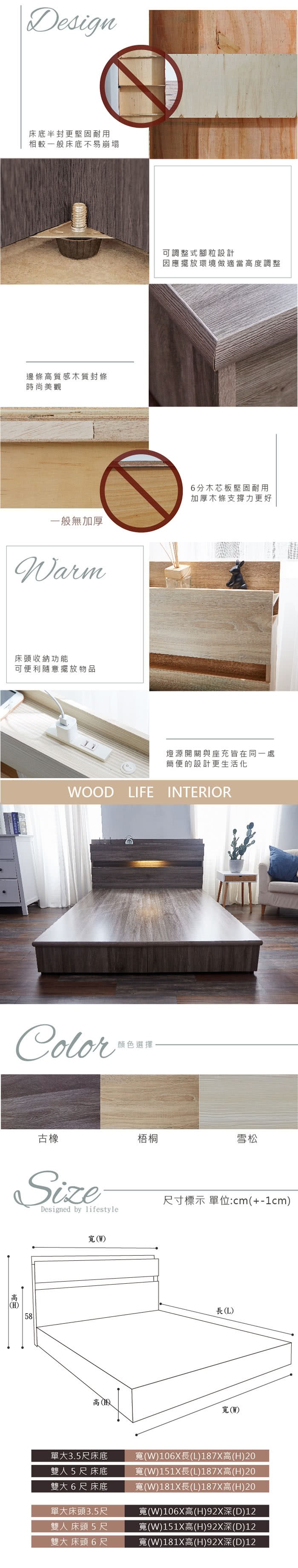 IHouse-山田 日式插座燈光房間二件組(床頭+收納床底)-雙人5尺古橡