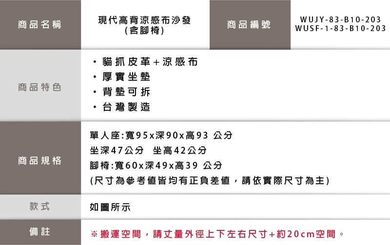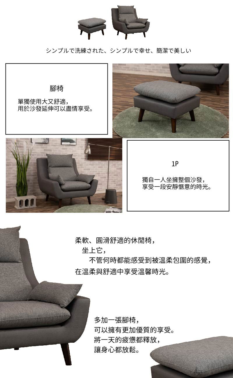 【UHO】現代高背機能涼感布-單人沙發+腳椅深灰色