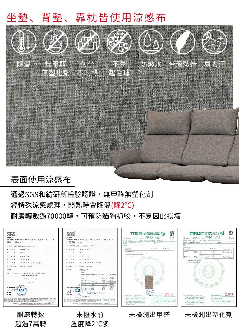 【本木】貝多芬 貓抓皮親膚功能沙發1人坐藍#5633+淺灰#50710