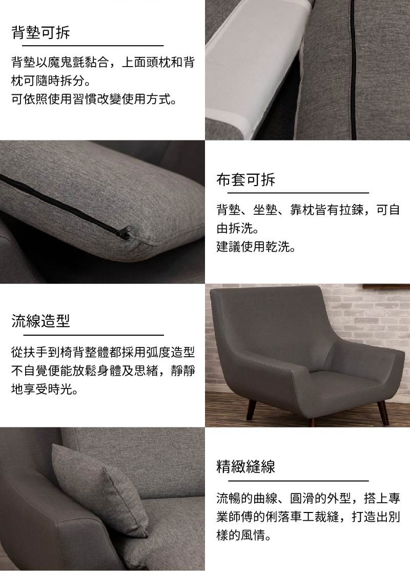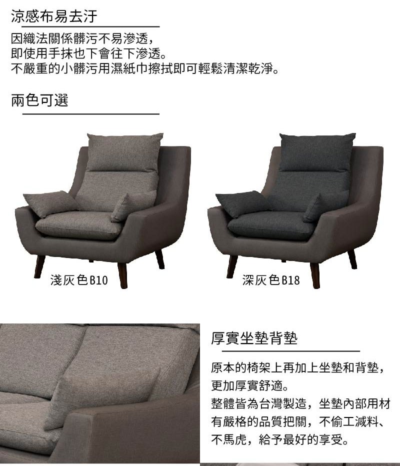Homelike 喜家居單人座亞麻布沙發(深灰色)(2425)