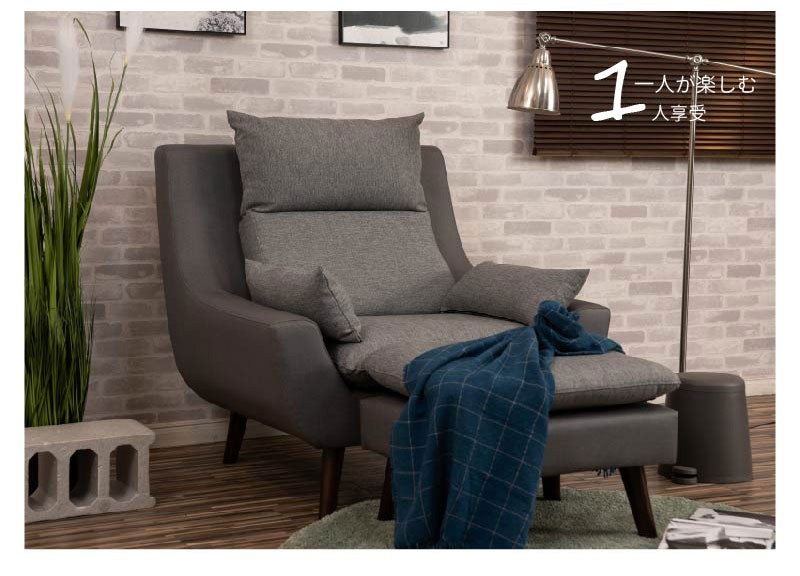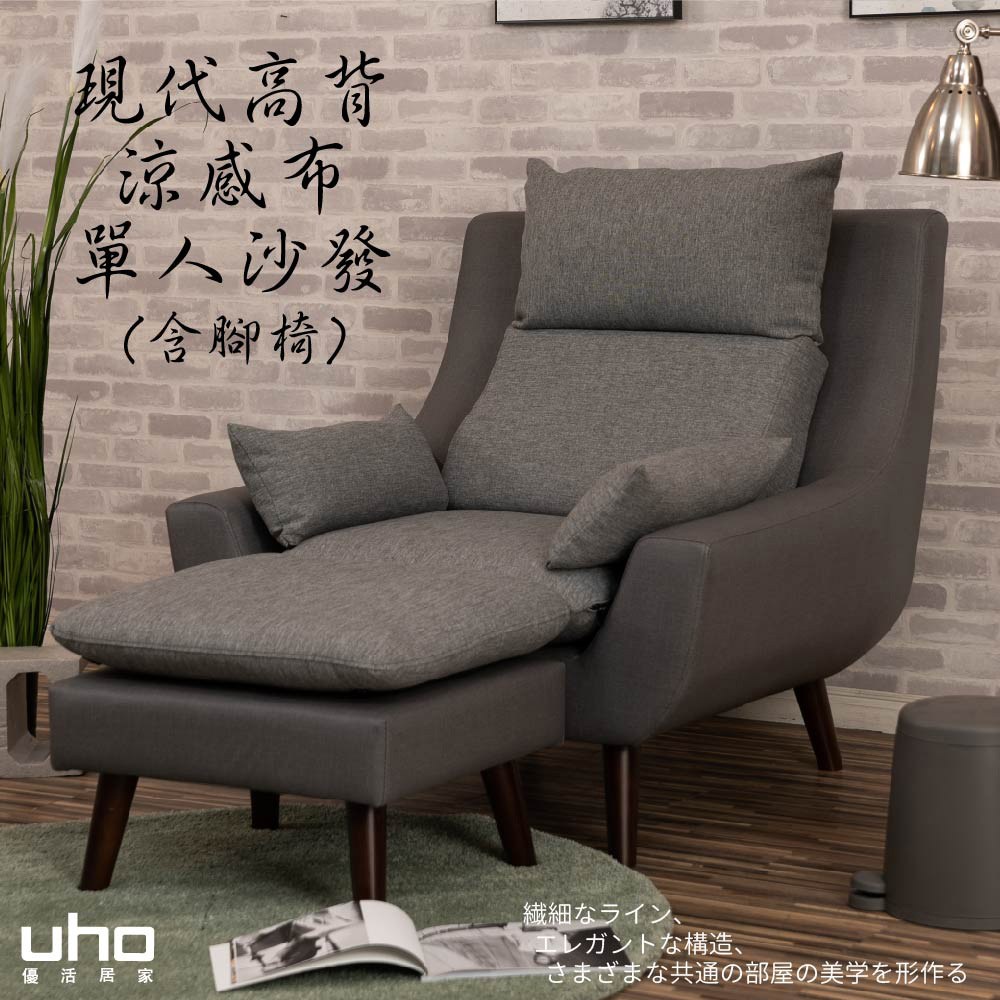 【UHO】現代高背機能涼感布-單人沙發+腳椅深灰色