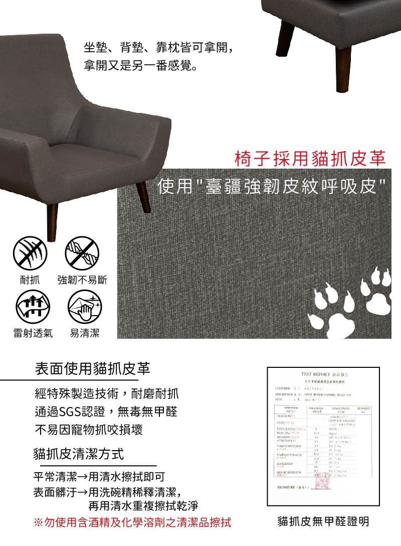 Homelike 喜家居單人座貓抓皮沙發(2036)