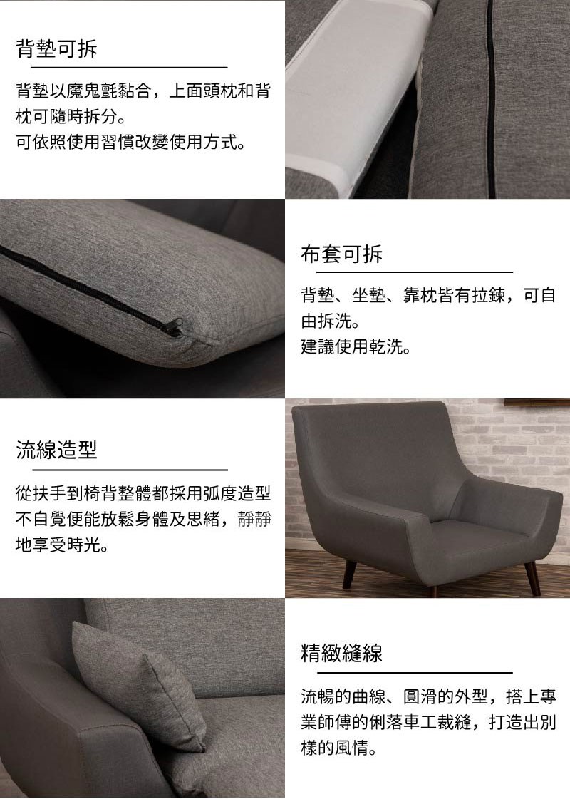 【本木】大和 台灣製耐磨貓抓皮1人坐沙發雲灰色#6710