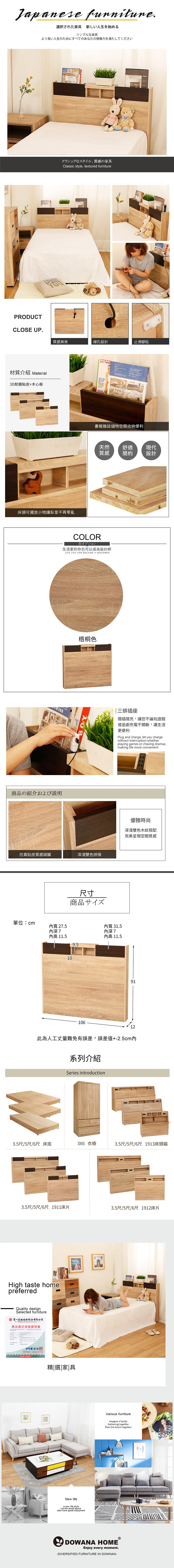 WAKUHOME 瓦酷家具Molly日系無印風三抽3.5尺床箱型2件組(床頭箱+床底)-寬106.3*深201.7*高100cm