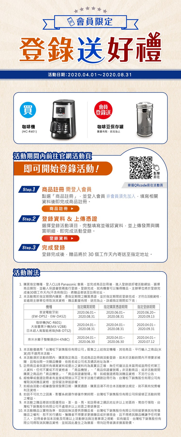領券獨家最高9折 【4 %回饋】Panasonic 咖啡機 NC-R601