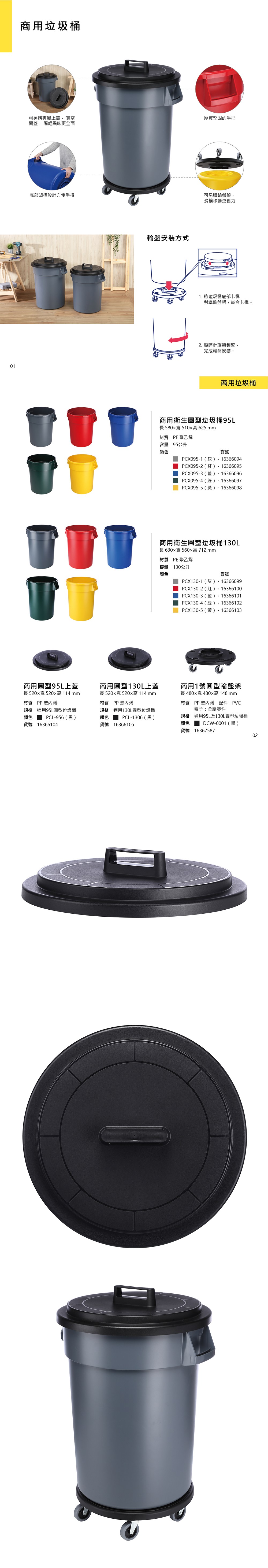 PCL-1306 商用圓型130L上蓋-(黑)