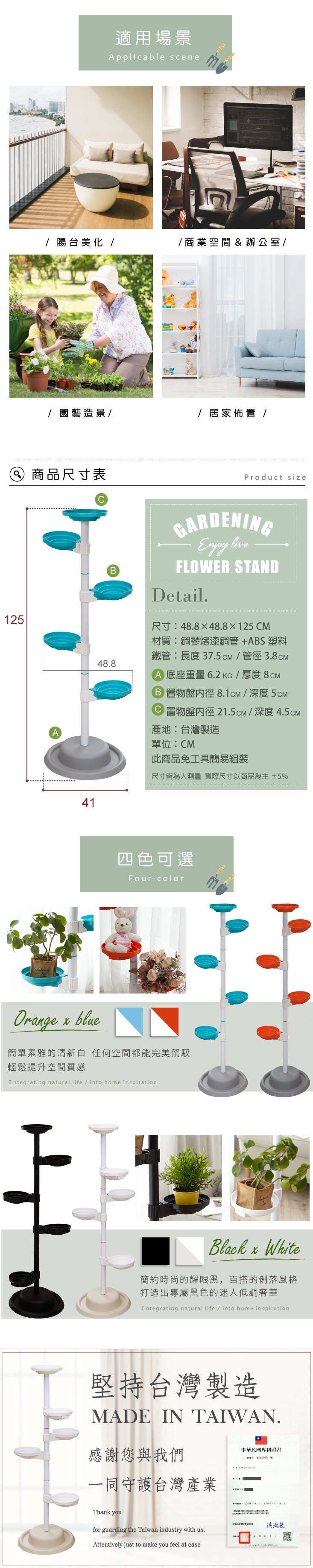 Abans-居家新型專利360度旋轉活動式盆栽架/展示架/收納架(四色各一)-4入