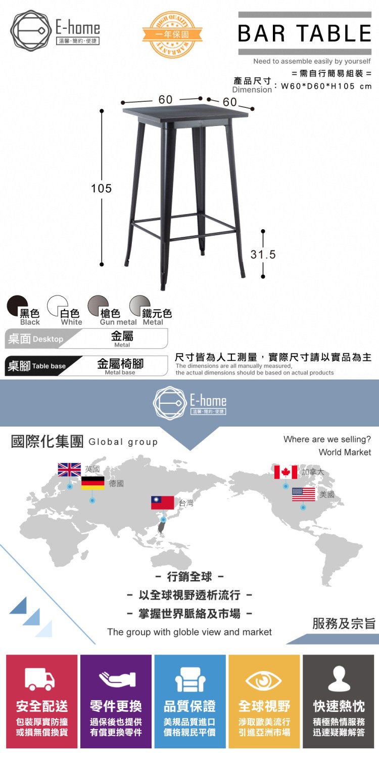 E-home Dale黛爾工業風金屬方形吧台桌-幅60cm-四色可選