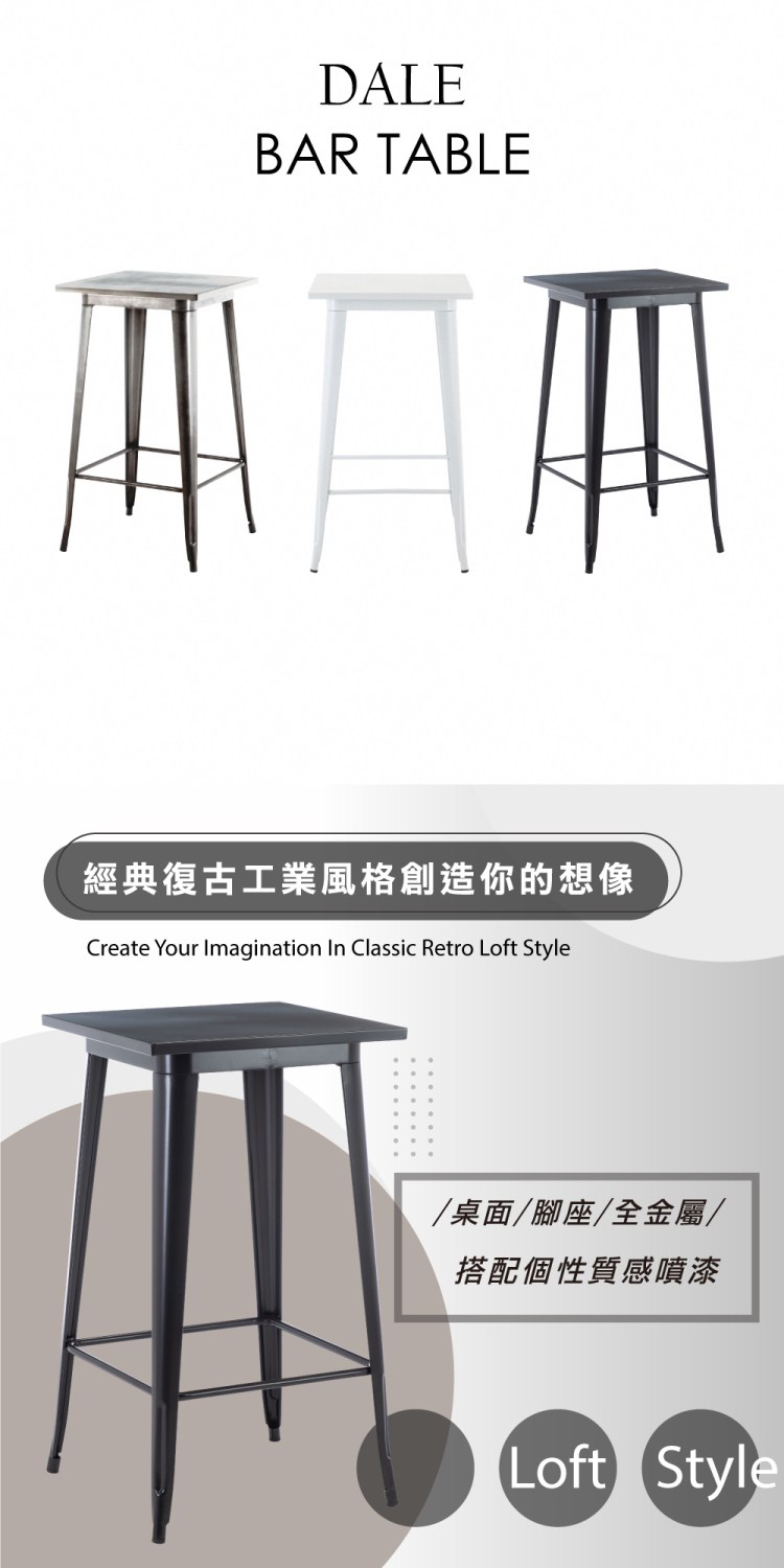 [E-home]Dale黛爾工業風金屬方形吧台桌-幅60cm,經典復古工業風格創造你的想像,征服你的視覺。