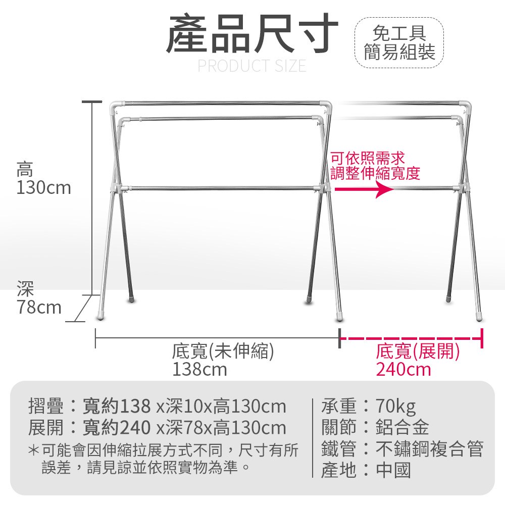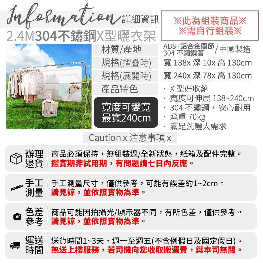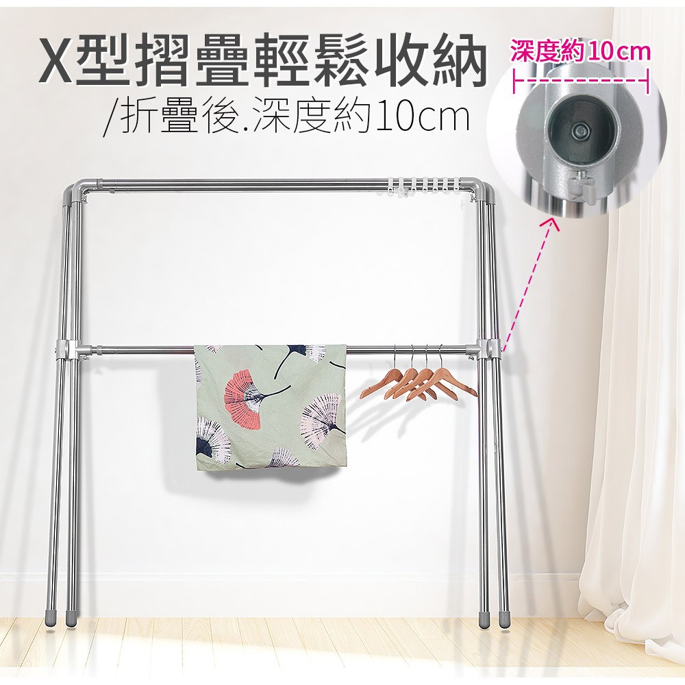 【IDEA】旗艦版2.4米不銹鋼X型移動式帶輪曬衣架/晾衣架 曬衣桿