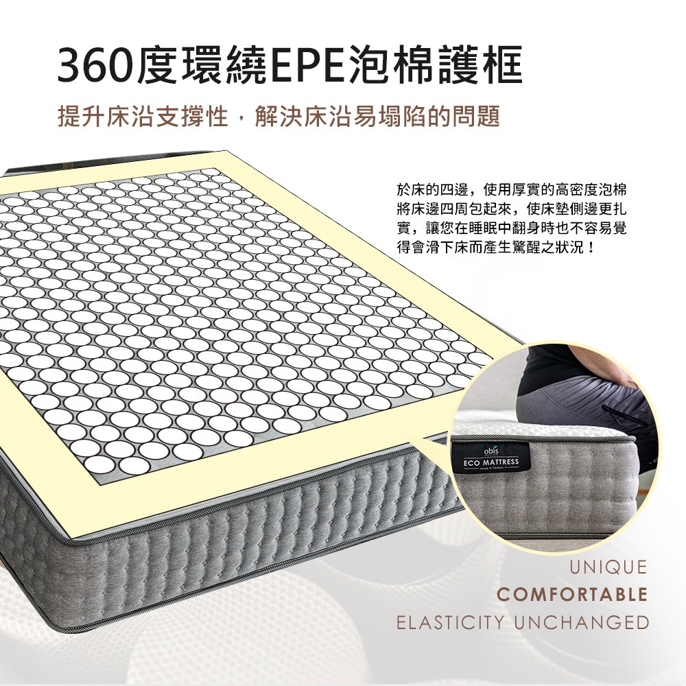 obis 鑽黑系列_FEANISE二線奈米石墨烯獨立筒床墊單人3.5*6.2尺(20cm)