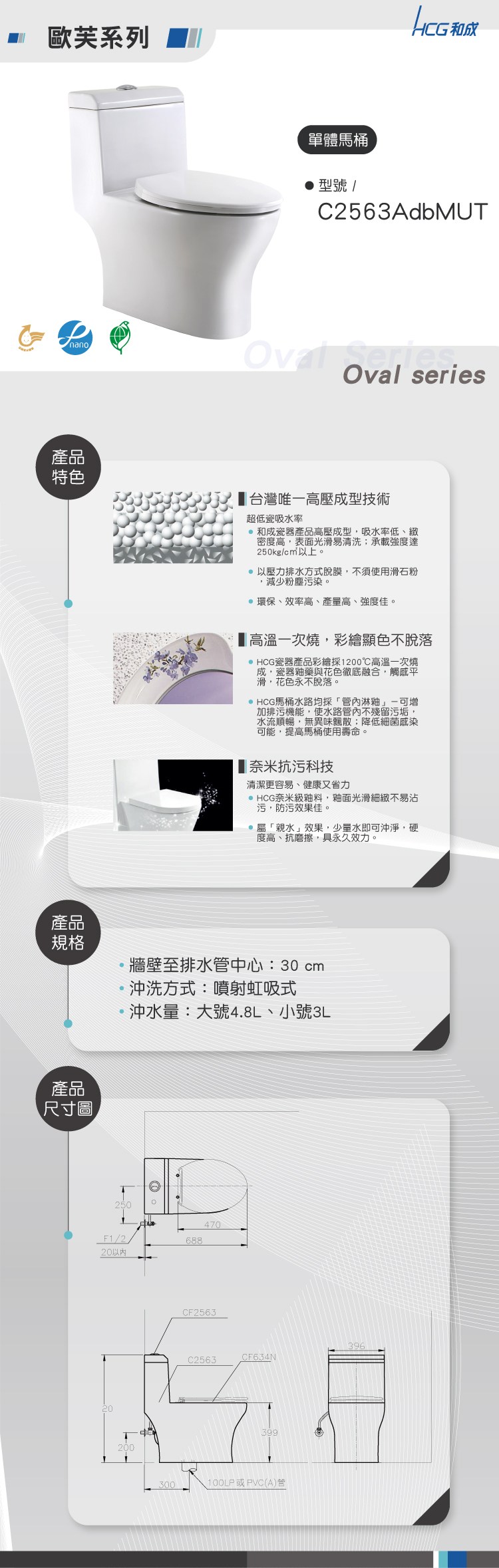和成 HCG 金級省水單體馬桶 C2563AdbMUT