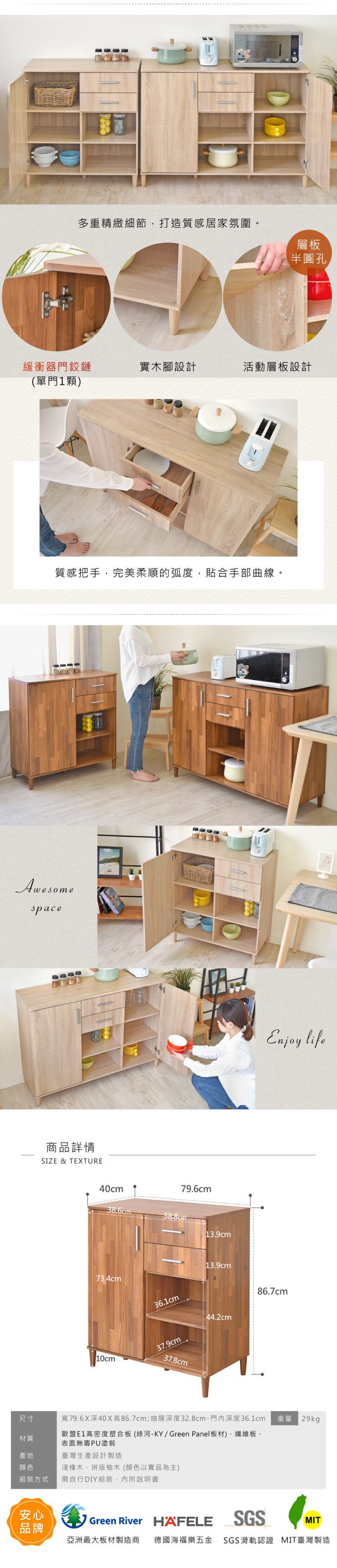 hoi! 林氏木業北歐風百搭0.4M四斗櫃 LS187 原木+白色