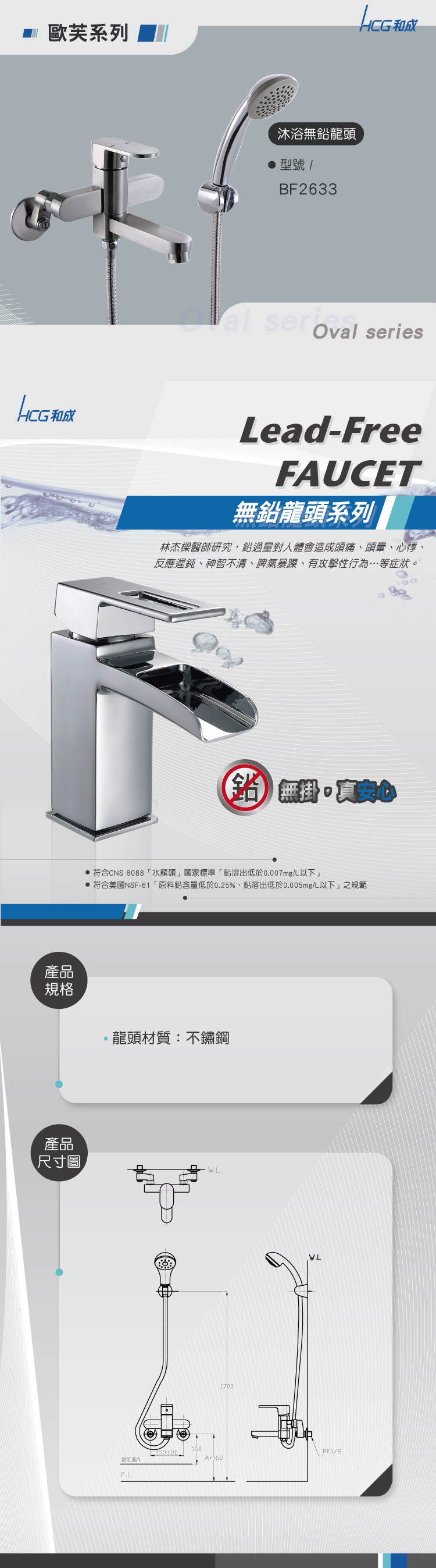 HCG沐浴無鉛不銹鋼龍頭/BF4130