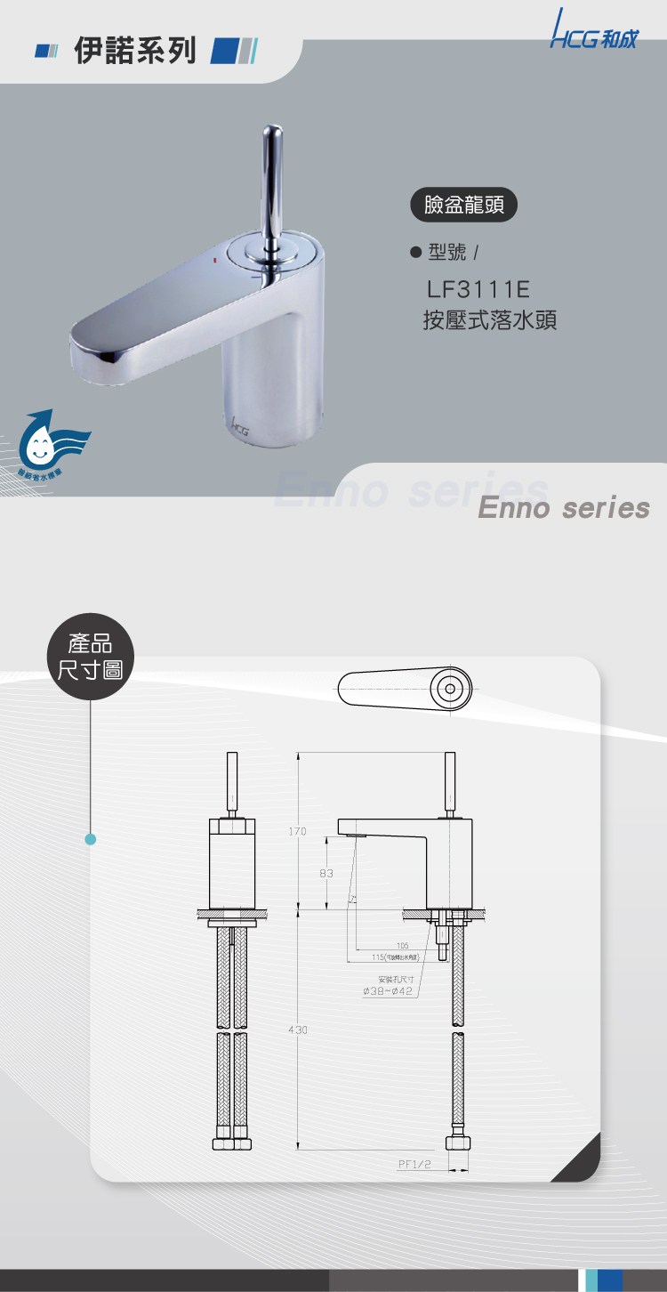 和成 HCG 增安全臉盆含陶瓷龍頭LF4182SLAdbR-3113U