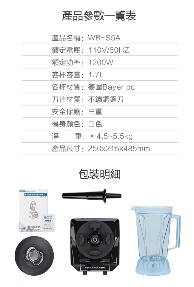【WRIGHT萊特】1.7L多功能食物調理機 WB-S5A
