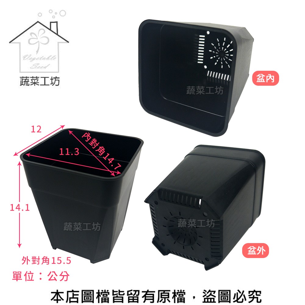 盆外約12*12cm 盆內約11.3*11.3cm 底部約9.4*9.4cm