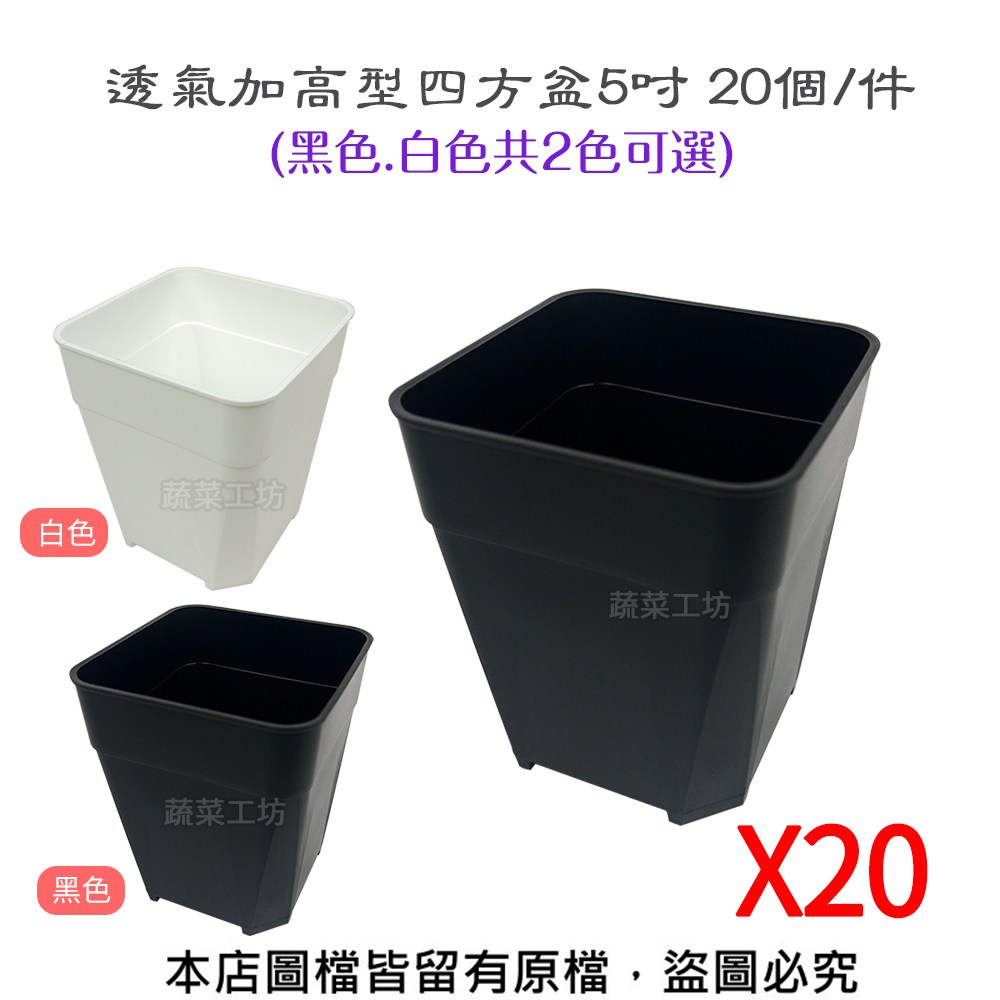 透氣加高型四方盆5吋 20入/組(黑色.白色共2色可選)