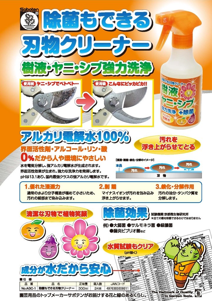 一般農業器具及刀刃上的油垢頑強不易清除,為此日本仙人掌公司專門研究開發此產品
