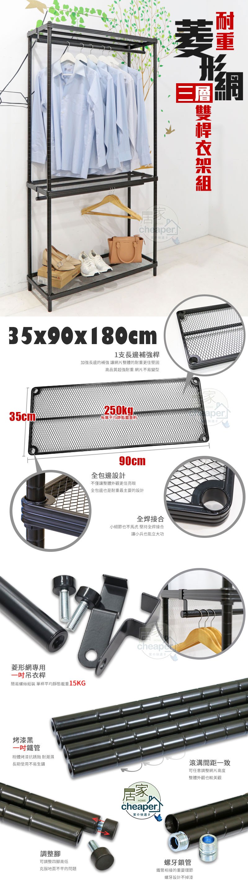 【居家cheaper 】菱形網三層雙桿吊衣架組35X90X180CM35X90X180雙桿