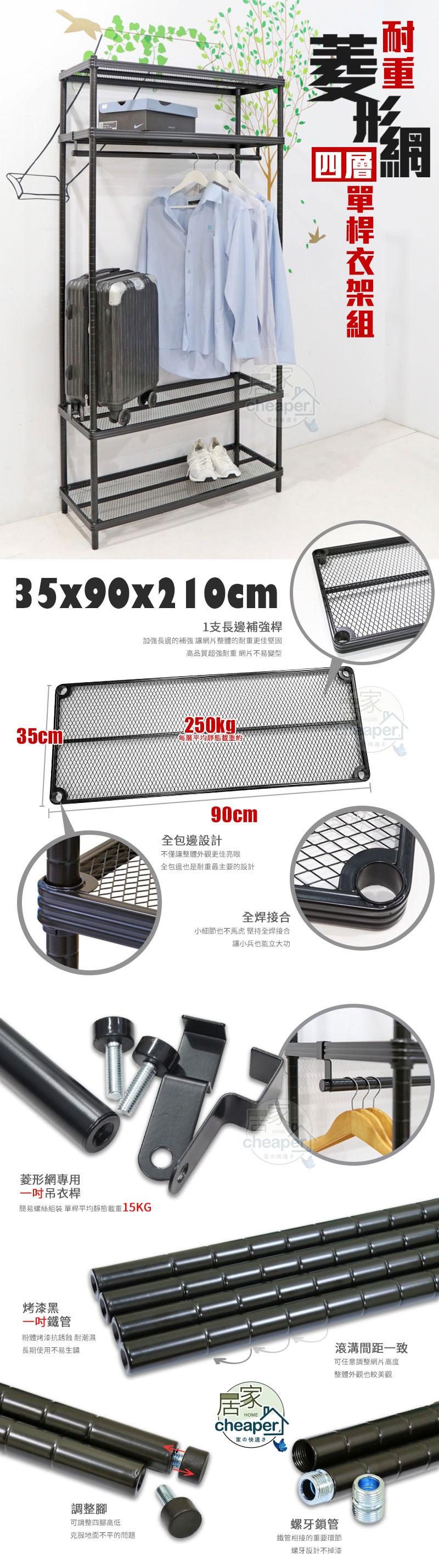 【居家cheaper 】菱形網四層單桿吊衣架組35X90X210CM35X90X210單桿