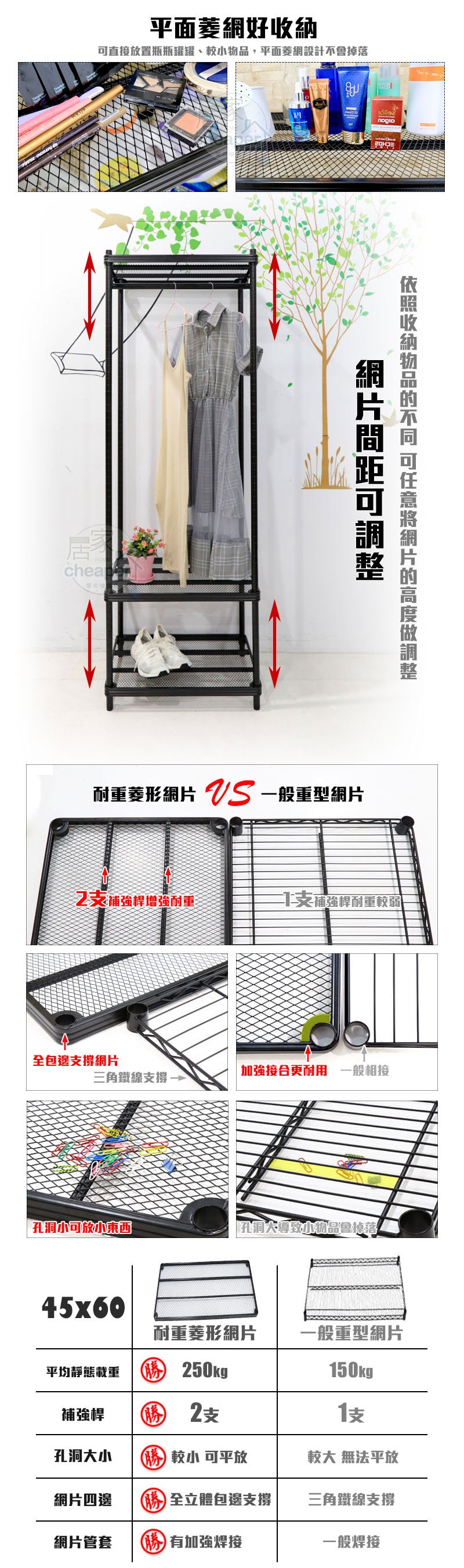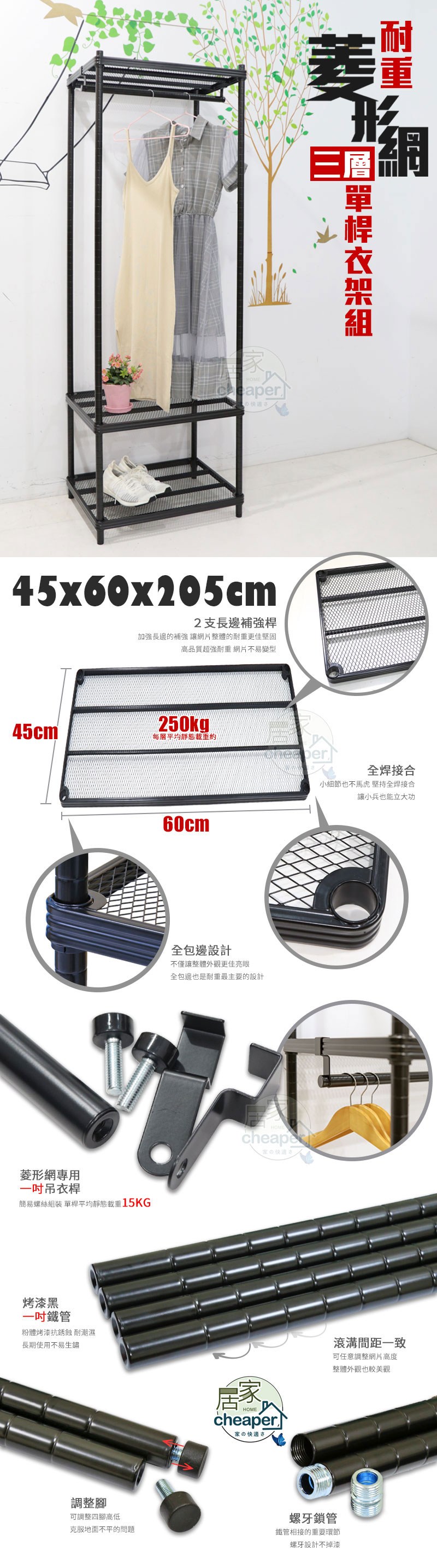 【品樂生活】45X60X175CM菱形網三層單桿衣架組/鐵架衣櫥/衣櫥架/波浪衣櫥/衣櫥櫃