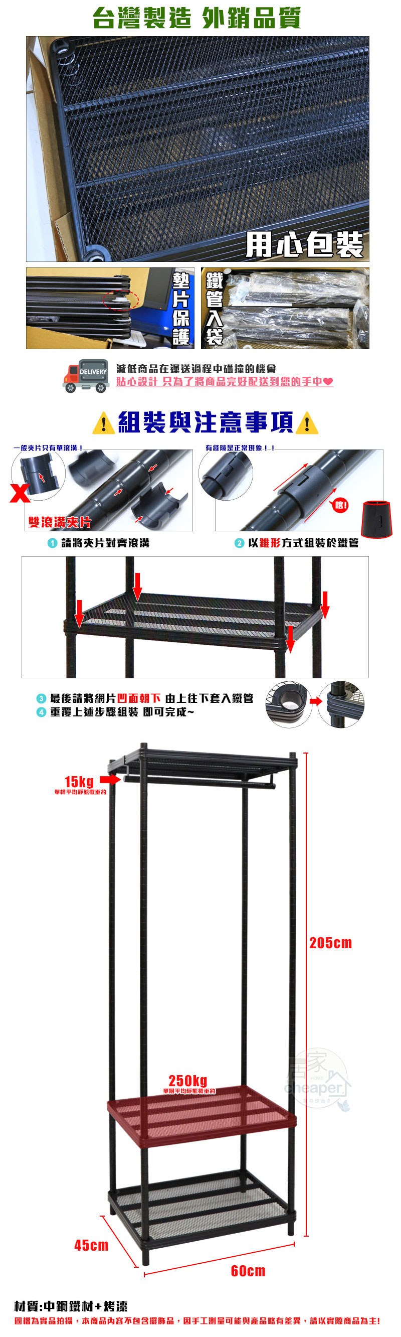 【品樂生活】45X60X205CM菱形網三層單桿衣架組/鐵架衣櫥/衣櫥架/波浪衣櫥/衣櫥櫃