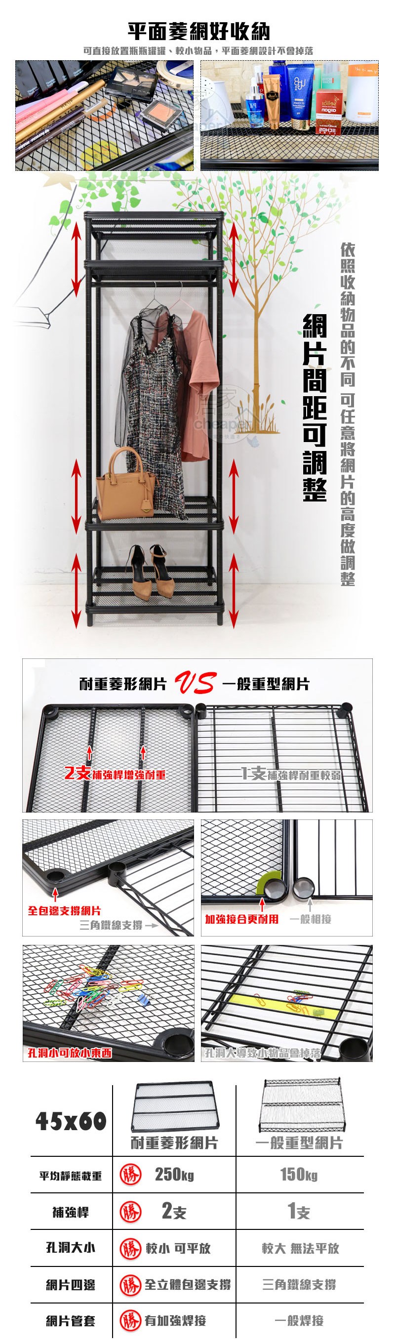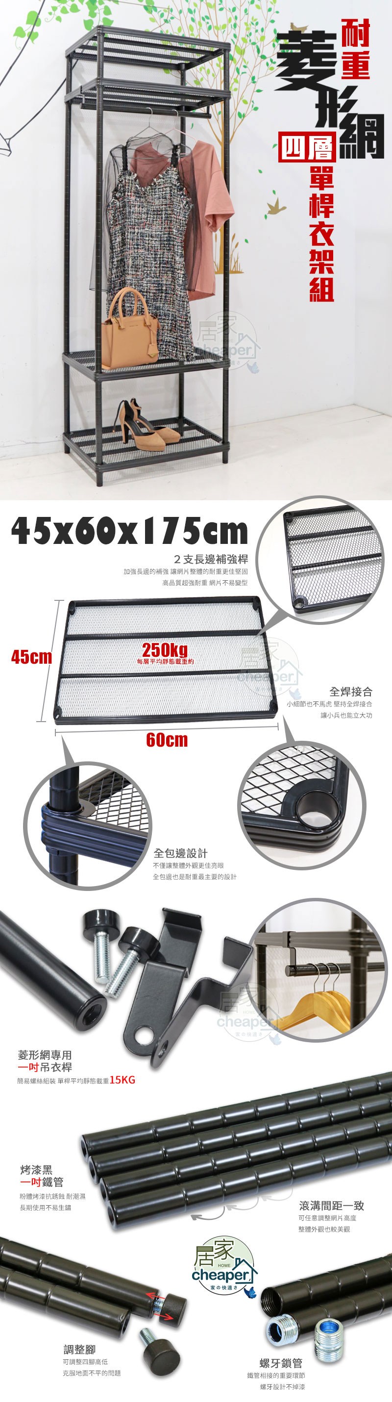 【品樂生活】45X60X205CM菱形網四層單桿衣架組/鐵架衣櫥/衣櫥架/波浪衣櫥/衣櫥櫃