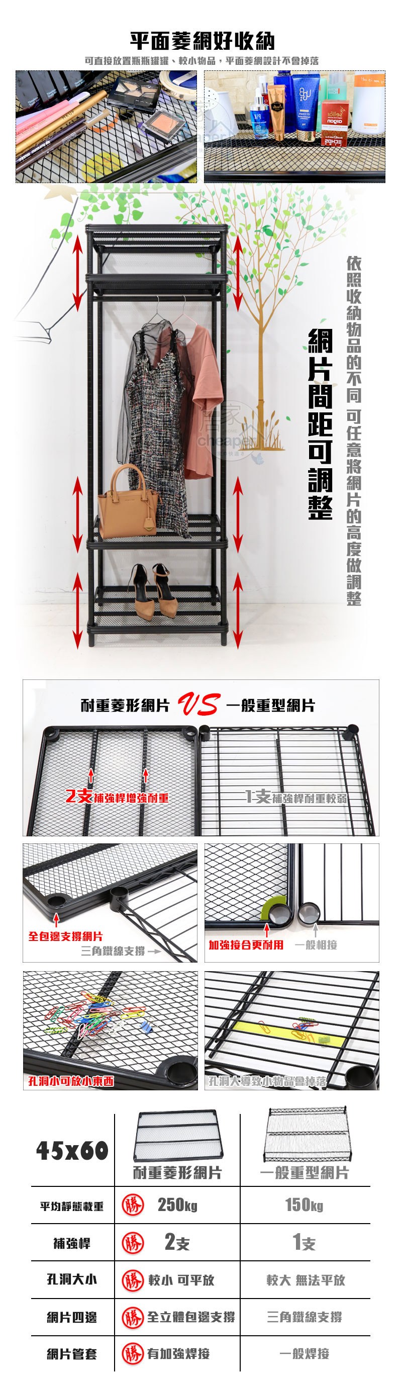 【居家cheaper】菱形網三層雙桿吊衣架組45X60X205CM45X60X208雙桿吊