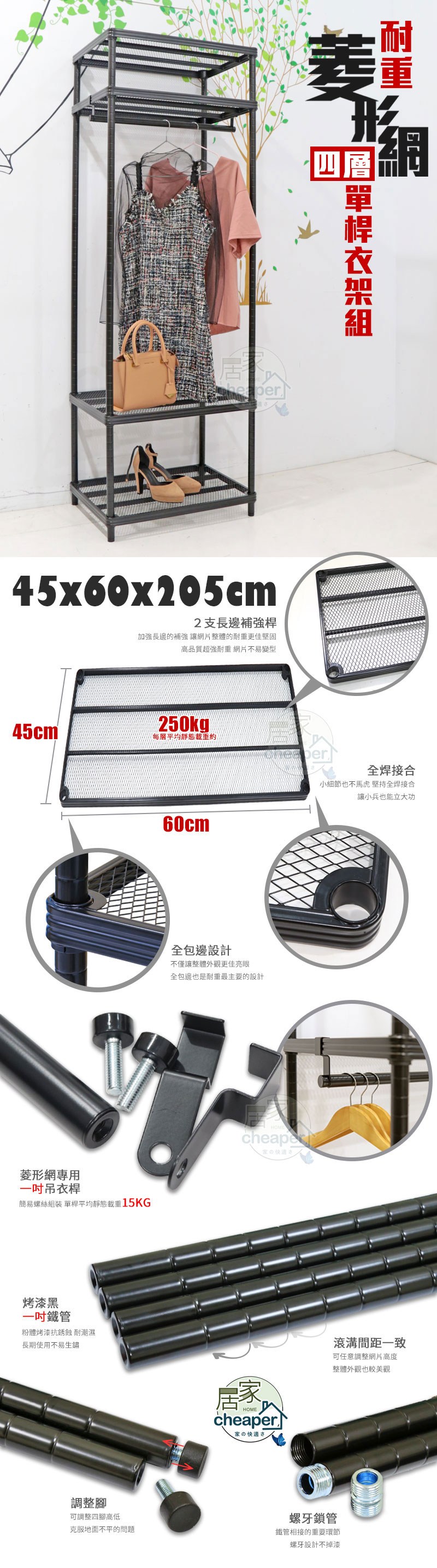 【居家cheaper 】菱形網四層單桿吊衣架組45X90X208CM45X90X208單桿