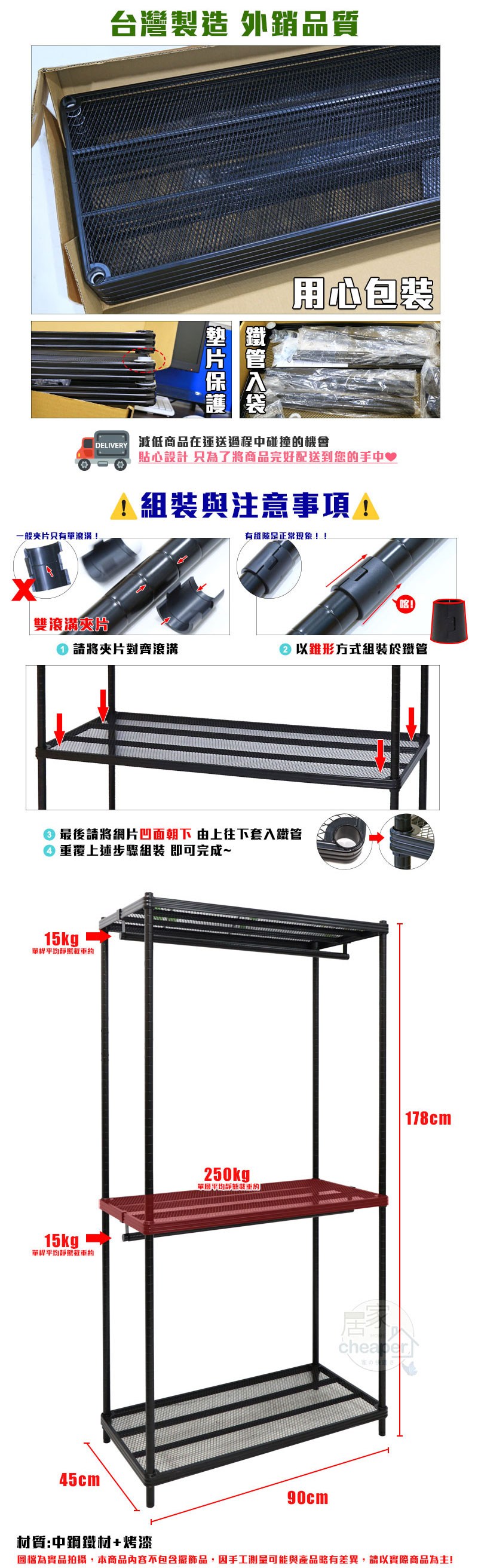【dayneeds】極致美學90x45x180公分三層沖孔烤白單桿衣櫥