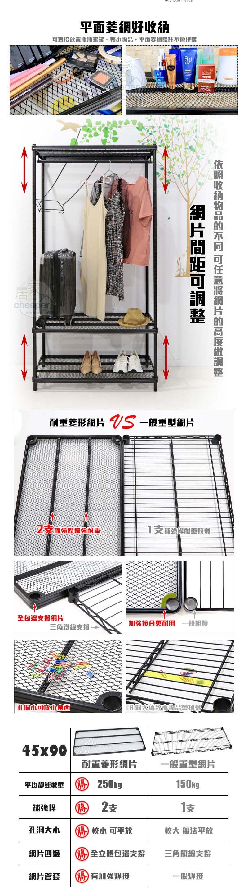 【品樂生活】45X60X175CM菱形網四層單桿衣架組/鐵架衣櫥/衣櫥架/波浪衣櫥/衣櫥櫃