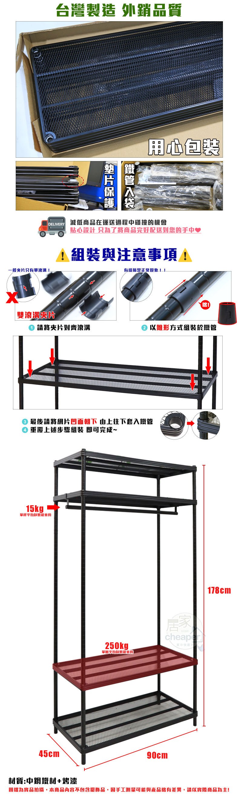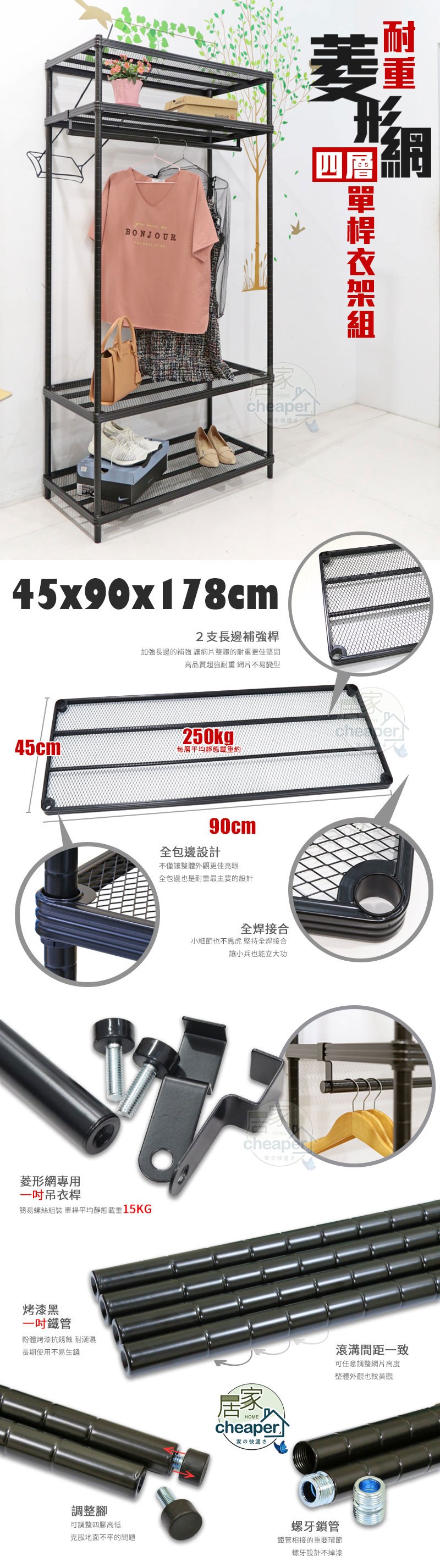 【品樂生活】45X90X208CM菱形網四層單桿衣架組/鐵架衣櫥/衣櫥架/波浪衣櫥/衣櫥櫃