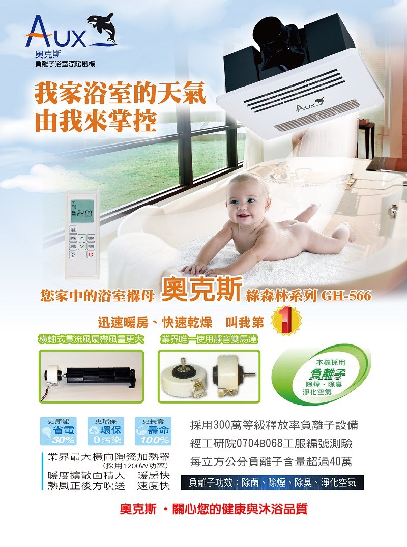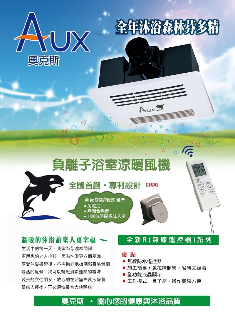 您家浴室的天氣由您來掌控,選擇浴室保母"奧克斯負離子浴室暖風機'享受全年沐浴森林負離子芬多精.