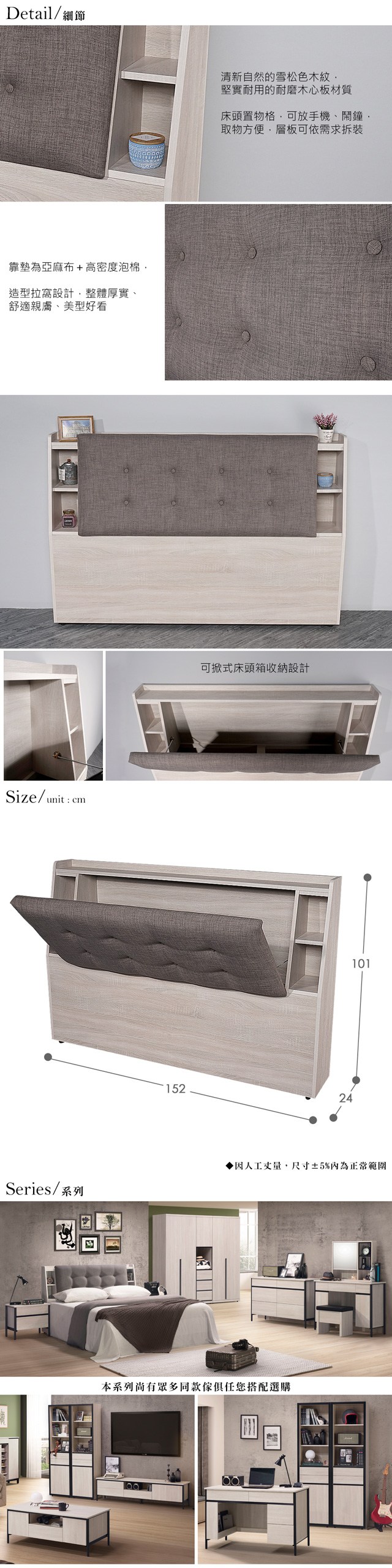 Homelike 喜家居雙人5尺收納床頭箱(1962)