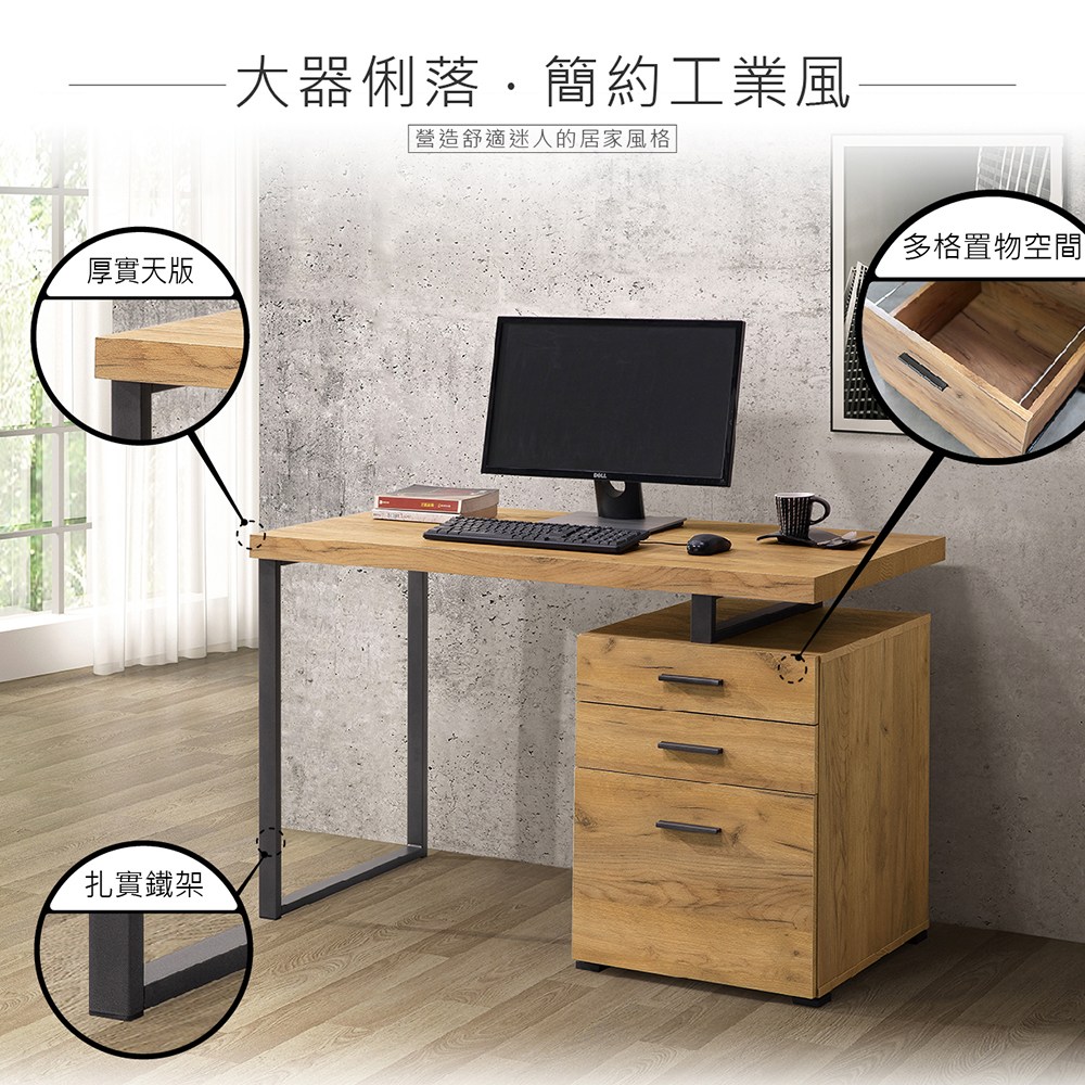 APP下單享點數4%|【綠家居】麗絲雙色4尺三抽書桌